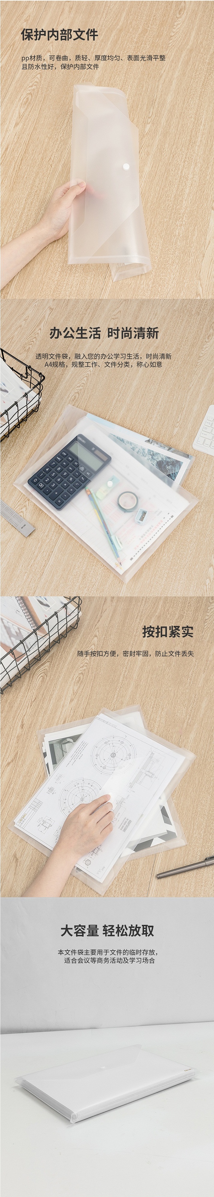 得力No.5501A文件袋A4加厚透明按扣 单个
