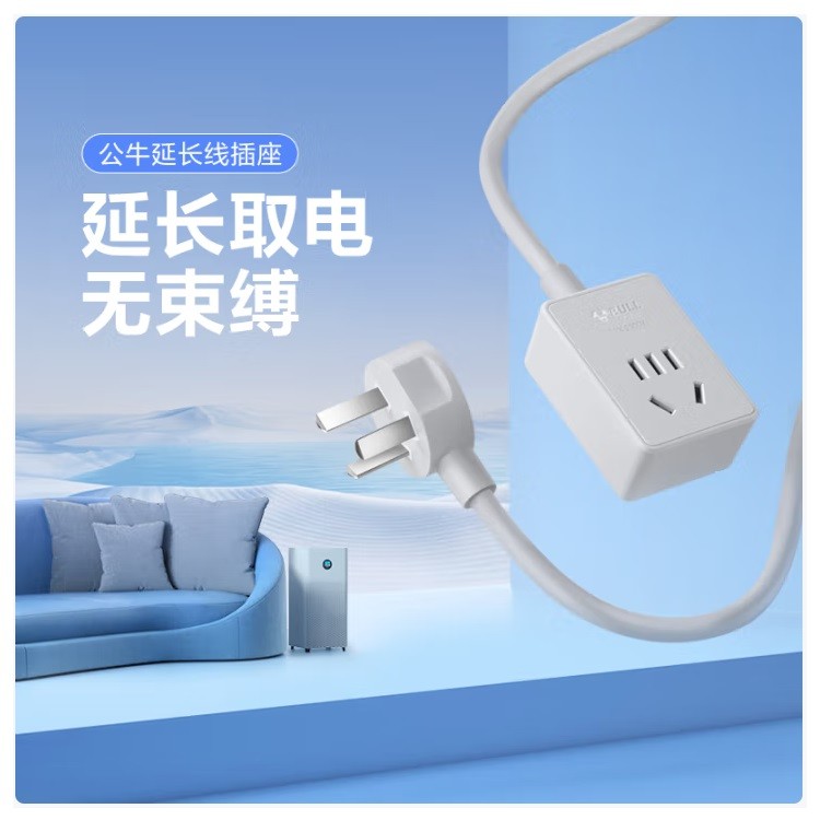 公牛GN-R2220插座 圆形4位总控 全长3米