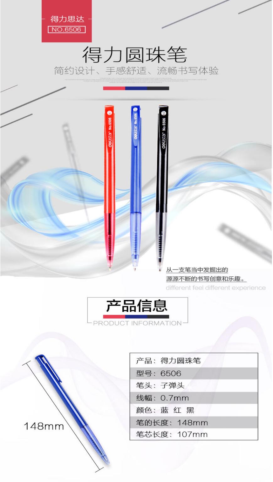 得力6506圆珠笔0.7mm子弹头 蓝色 单支