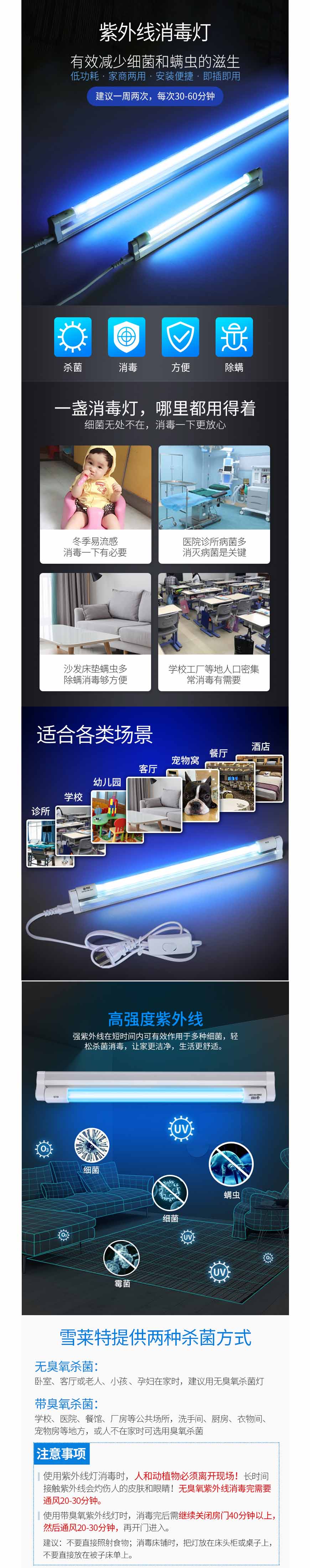 雪莱特紫外线消毒杀40W 消毒灯管+支架 1.5米电源线 无臭氧