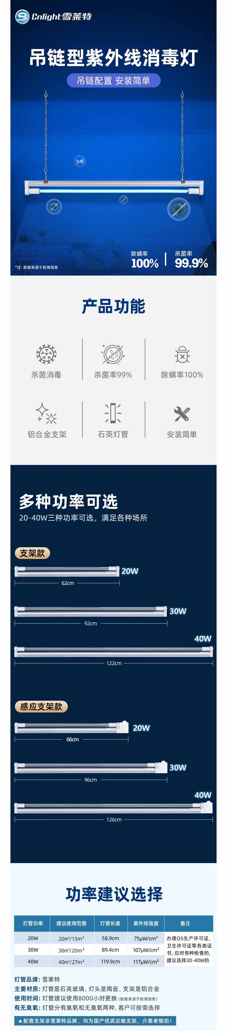 雪莱特紫外线消毒灯室内悬挂式 30W 有臭氧+支架+1米吊链